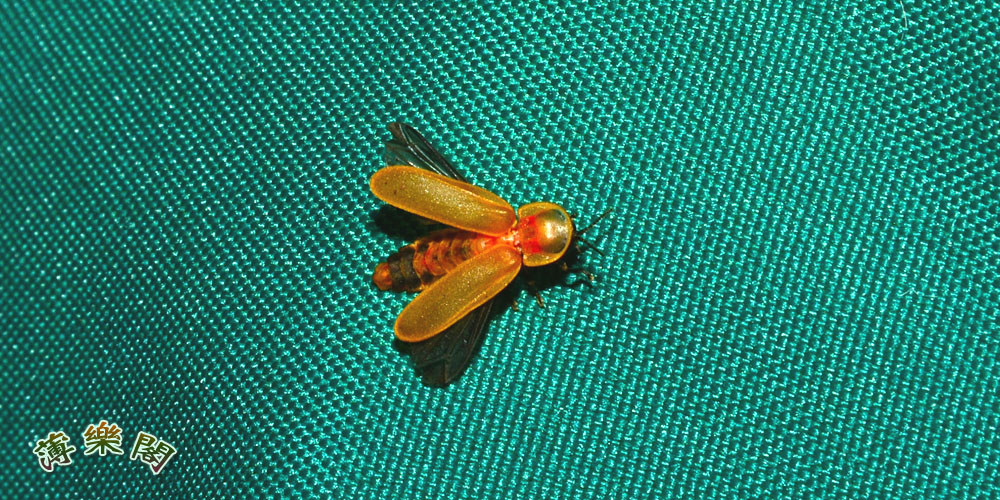 這是橙螢交配的季節。此蟲出沒有定時,6點15分開始陸續飛出來,7點鐘就都一一「熄燈」睡覺去了。我在營的第二天晚上來得尤其多,信手逮著了一隻,讓牠六足朝天,仰臥葉片上,以便照相。此螢善於裝死,一裝就是老半晌,乾脆懶怠翻身。照相機固定好了,就給螢姿復了位,耐心等著;這時不能拿燈照牠,否則燈亮牠不亮;在漆黑之中等了又等,儘管天上有一鉤新月,卻什麼都照不見。最後牠果然發光起動了,以為要振翅起飛,一摁快門,得了幾張連拍,卻竟是白幹一場!原來此螢發現一處石縫,慢條斯理地爬了進去。橫是太晚了,得歇了!